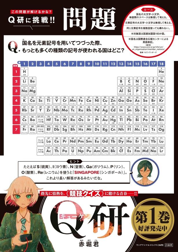 また、3/27より全国書店にて『Q研』1巻宣伝ポスターが掲出中だ。コミックスのクイズ監修:セブンワンダーズによる難問ポスター、ぜひこちらにも挑戦していただきたい。
