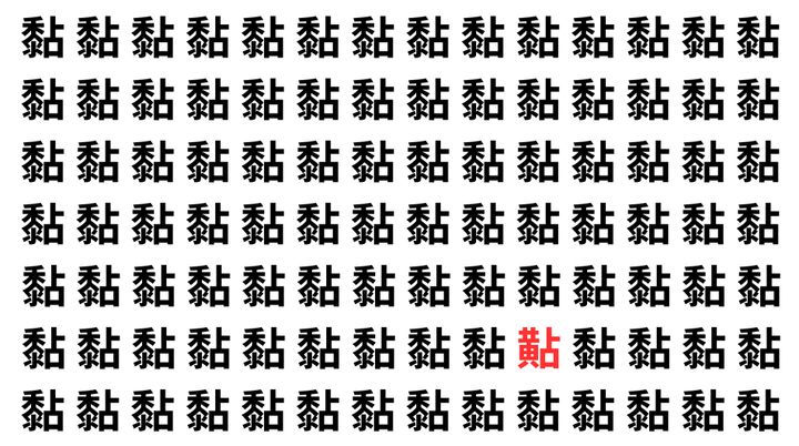 たくさんの「黏」の中に、よく似た別の漢字が1文字だけ隠れています。