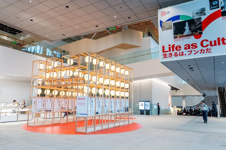 2階のエントランスではシーズンテーマの掲示や特別展示を開催。取材時は多くの提灯が特徴的な「Life as Culture 生きるは、ブンカだ」が展示されていました。