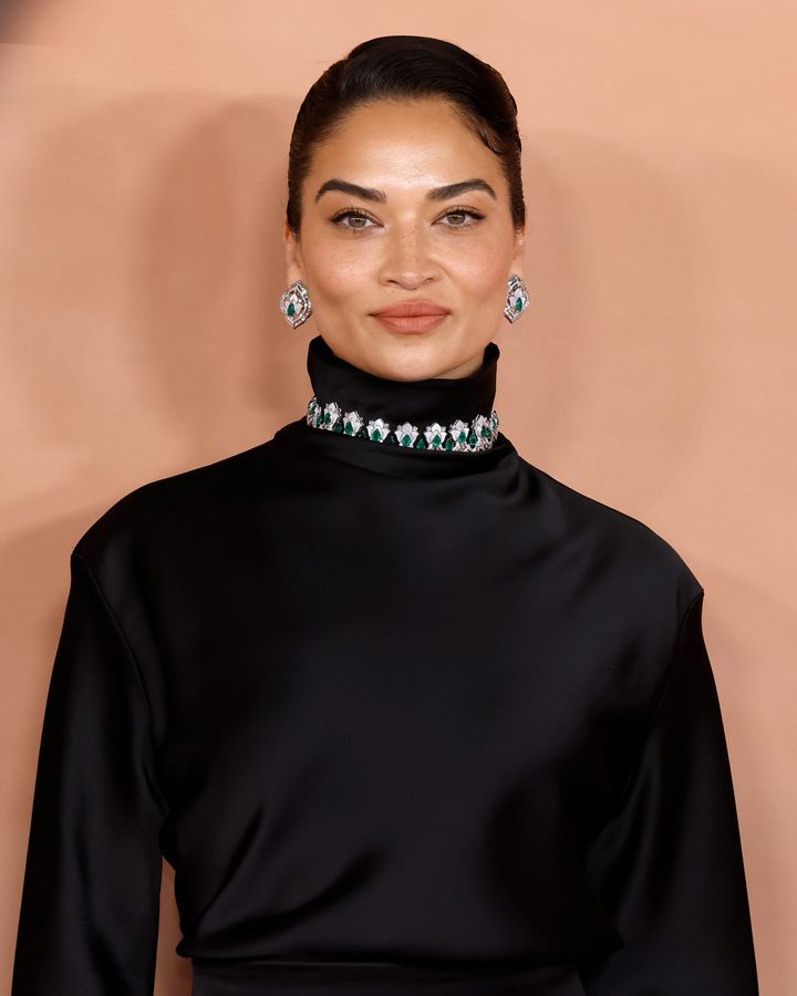 どうしても首元に輝きを添えたいのなら、バランスが取りづらいロングチェーンネックレスは避け、モデルのシャニーナ・シャイクのようなチョーカータイプをチョイスすること。特にフォーマルな場面では、シンプルなドレスに華やかな煌めきをプラスしてくれる。