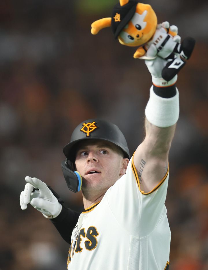 巨人のキャベッジが27日の阪神戦、先頭打者本塁打を放ち先制した。