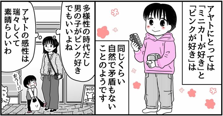 「アヤトの感性、素敵!」そう自分に言い聞かせながらも、アヤトがピンクを手に取るたびに、私の心には小さな「ざわつき」が生まれていたのも事実です。というのも……アヤトの感性が、他人の目にどう映るんだろうと思ってしまうことがあるのです。