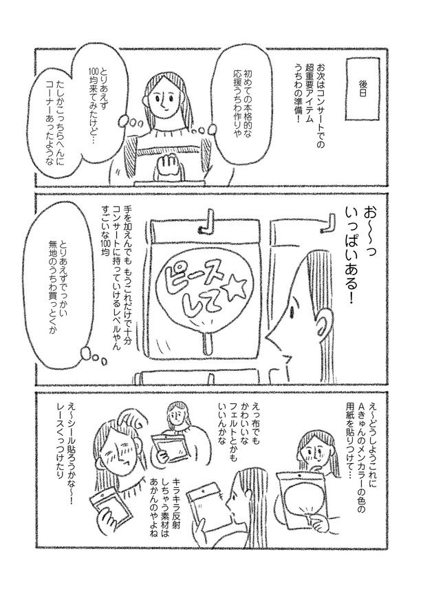ライブに向けて準備開始。推しメンカラーの服、応援うちわ…準備の時点で楽しすぎる!!/とびだせ! つづ井さん3