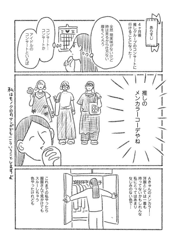 3. ライブに向けて準備開始。推しメンカラーの服、応援うちわ…準備の時点で楽しすぎる!!/とびだせ! つづ井さん3