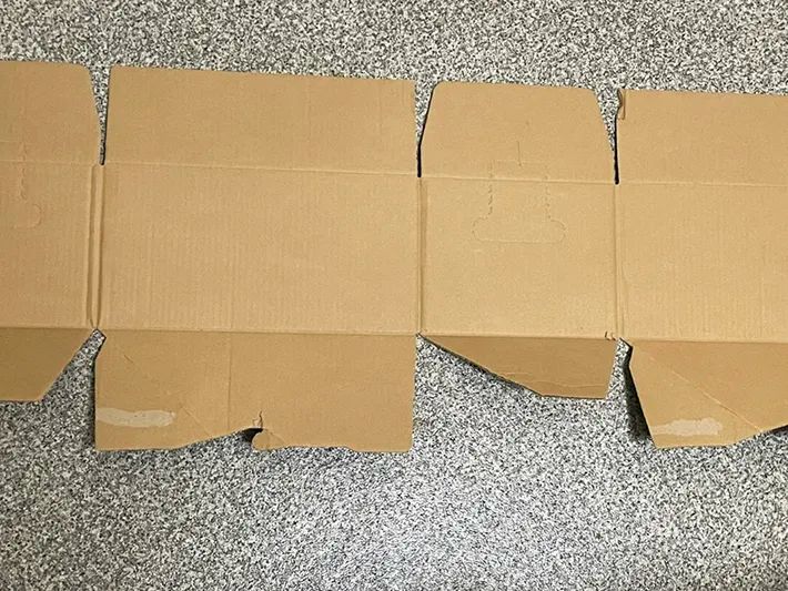 継ぎ目を剥がすと、このようにダンボールを開くことができます。