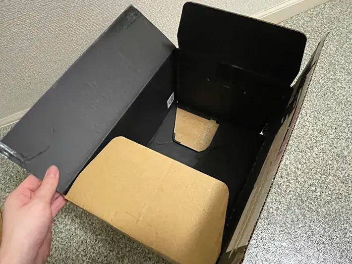 筆者が用意したダンボールは、表は真っ黒ですが、裏は無地でした。使い勝手がよさそうです。