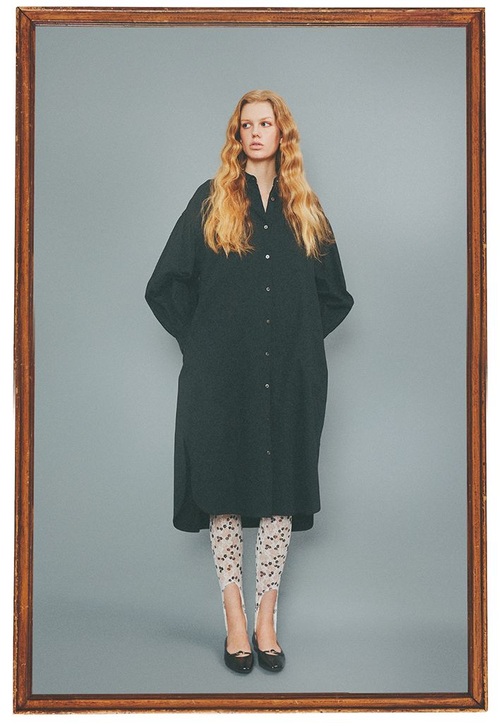 レーストレンカ 14,300円/プロヴォーク デザインブティック(ジャック・オブ・オール・トレーズ プレスルーム) 黒シャツワンピース 44,000円/ウィークエンド ピアス 各25,300円/e.m.(e.m.青山店) パンプス 34,100円/ファビオルスコーニ(伊勢丹新宿本店 本館2階 婦人靴)