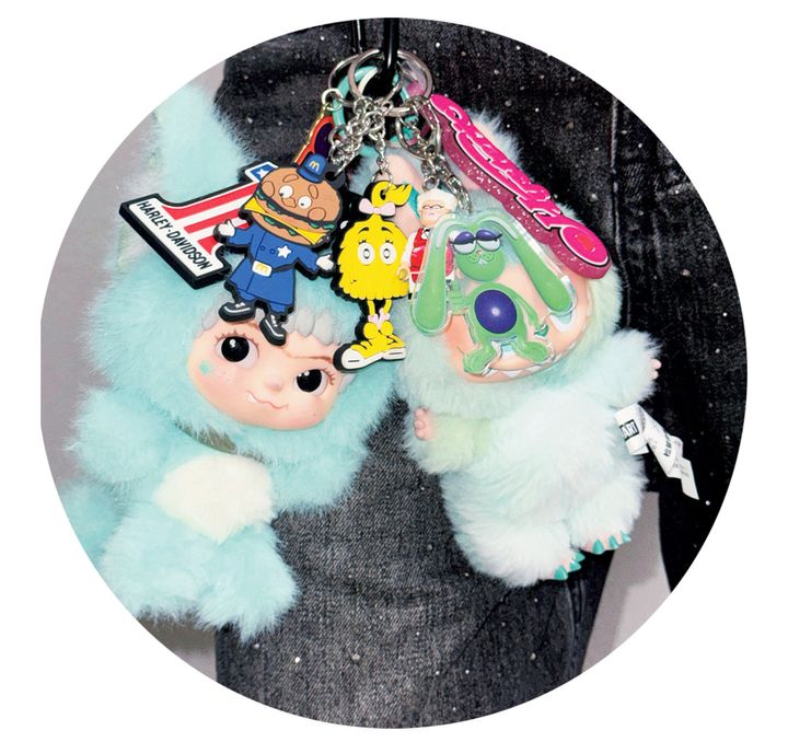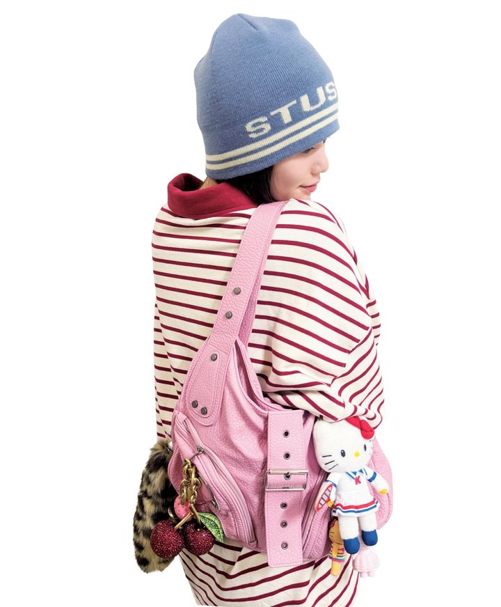 バッグは持つと意外となじむので、つけ過ぎくらいが可愛い! ワククやラブブなどお気に入り達をカラビナにまとめてボトムのベルトループにつけて、コーデのアクセントに