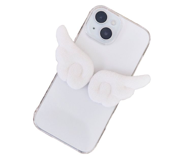 スマホはウィッシュコアを意識。100均のクリアケースに羽のヘアクリップをつけました