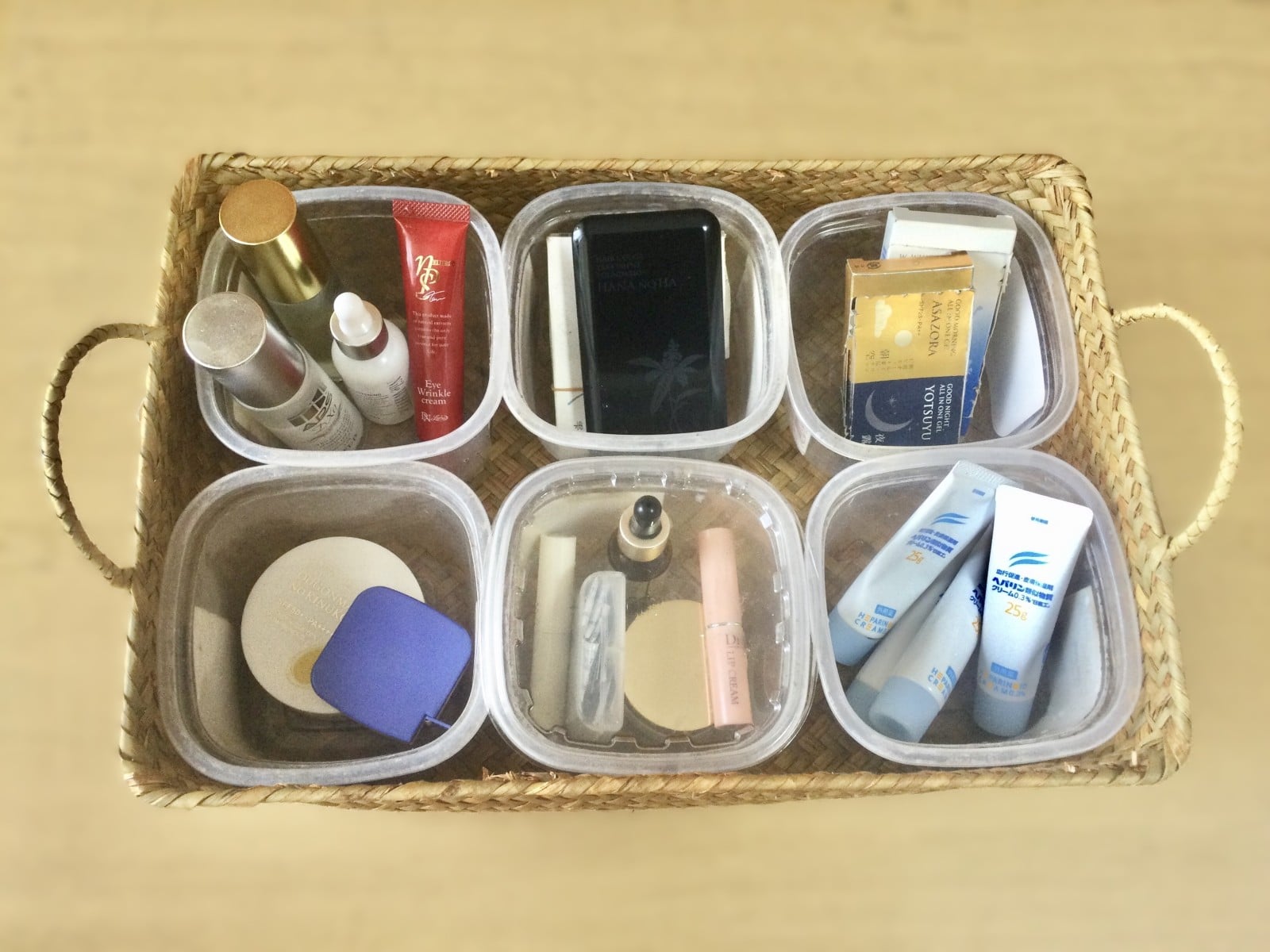 筆者は、バラバラになりがちなコスメ用品を分けて収納しています。他にも、文房具や小物、裁縫用具などを入れるのもおすすめ。