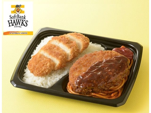福岡ソフトバンクホークスとのコラボ商品です。チキンカツとメンチカツを合わせた2種類のカツが味わえる弁当です。 カロリー:1036kcal 【販売地域】九州