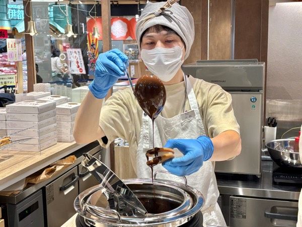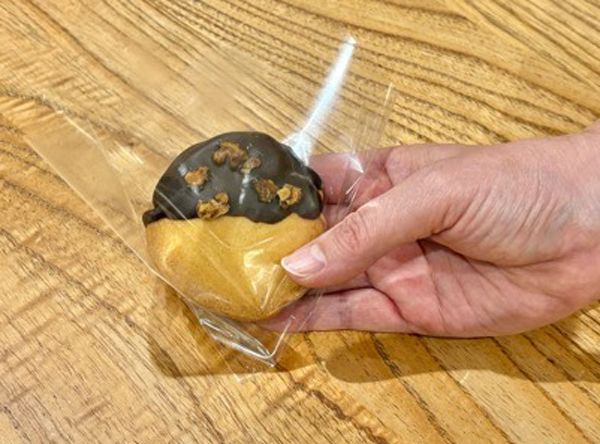 目の前でチョココーティングやクルミをトッピングしてくれるので、出来上がりまで大人の私もウキウキしました。子ども達はもっと喜びそうですよね。できたての味わいも最高でたしかにもうひとつ食べたくなる味でした!