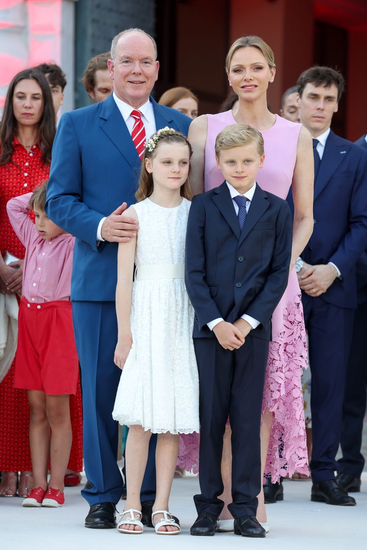 アルベール2世大公(Prince Albert II of Monaco)、ガブリエラ公女(Princess Gabriella of Monaco)、ジャック公子(Prince Jacques of Monaco)、シャルレーヌ公妃(Princess Charlene of Monaco) Pascal Le Segretain / Getty Images