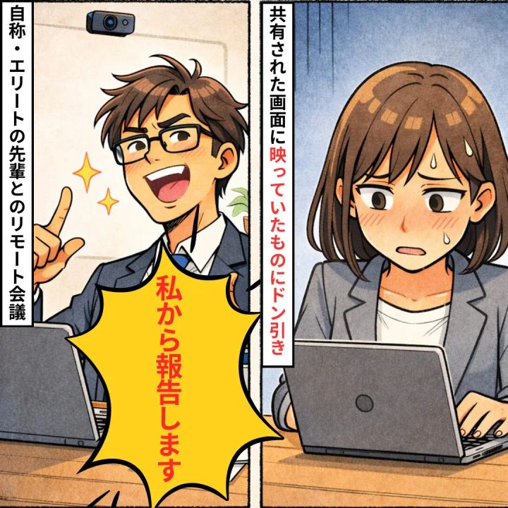 「私から報告します」自称エリートの先輩。だが、共有した画面に映っていた恥ずかしい秘密とは【短編小説】