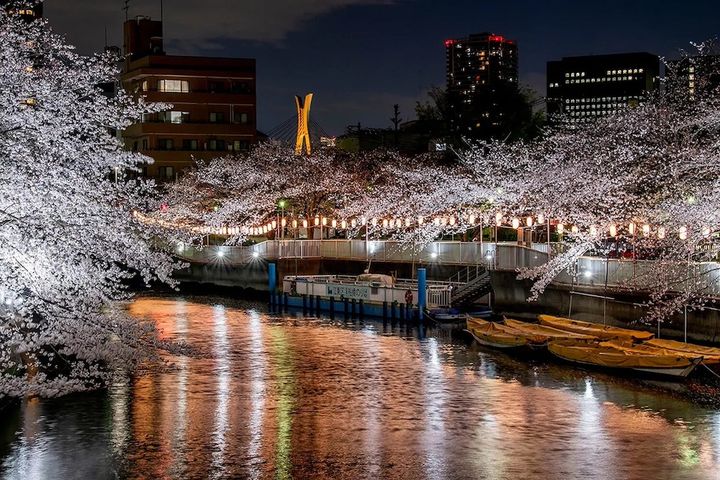 都内有数の桜名所「目黒川」で優雅に水上花見