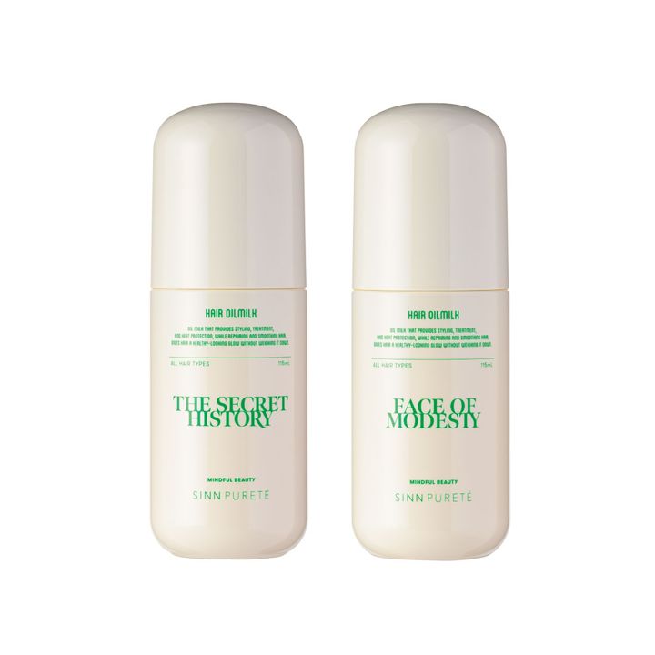 左から/ヘア オイルミルク THE SECRET HISTORY、同FACE OF MODESTY 各115㎖ 各2,970円(シンピュルテ TEL:0120-465-952)