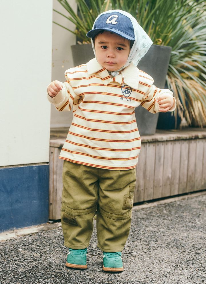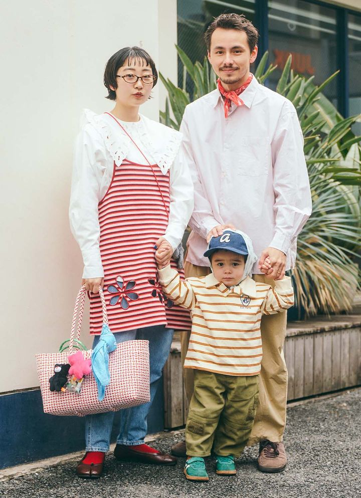 ボーダーやストライプなどライン柄を取り入れて、楽しさ漂うリズミカルな春コーデが到着! いろいろなアレンジが出来る万能バンダナは、手軽に家族リンクが叶うから、ぜひ参考にしてみて。