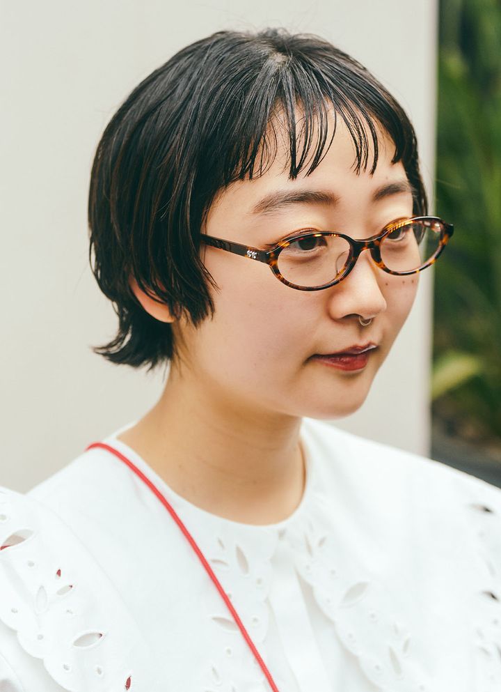 旬なオーバル型のメガネは、レディな雰囲気漂うアイテム。肌なじみの良いべっこう柄をセレクトして、マイルドに仕上げ!