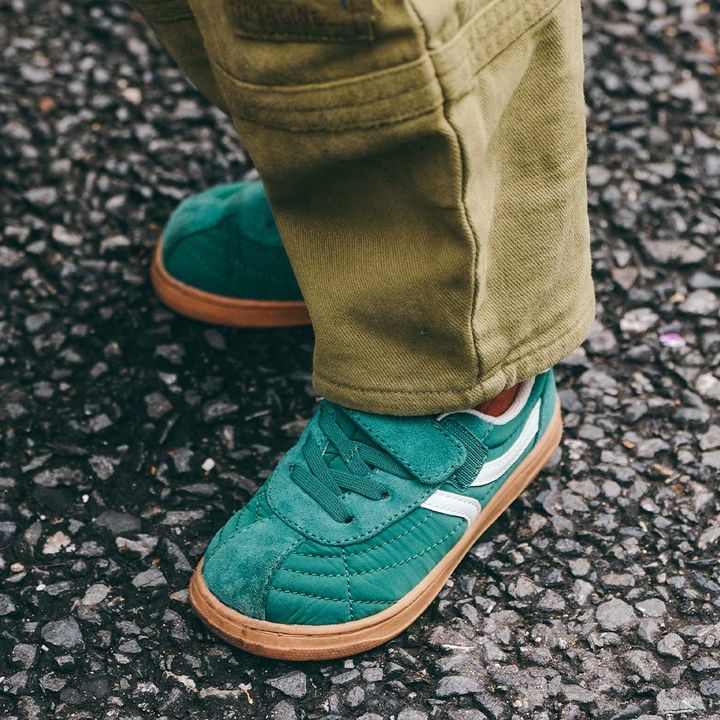 鮮やかなグリーンのスニーカーが挿し色役に抜擢! ガムソールが効いたおしゃれなデザインにも注目。