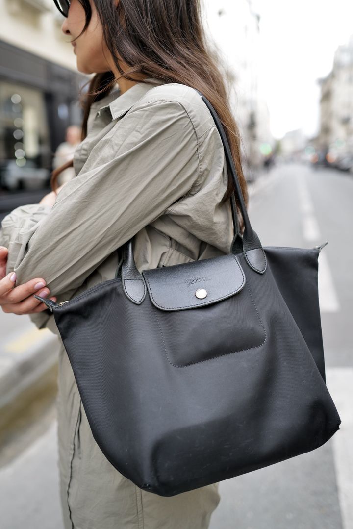 デイリートートとしてパリジェンヌに愛されている「ロンシャン」の“ル プリアージュ”。ヴィルゲスはエッジの効いた着こなしにも似合うオールブラックをチョイス。