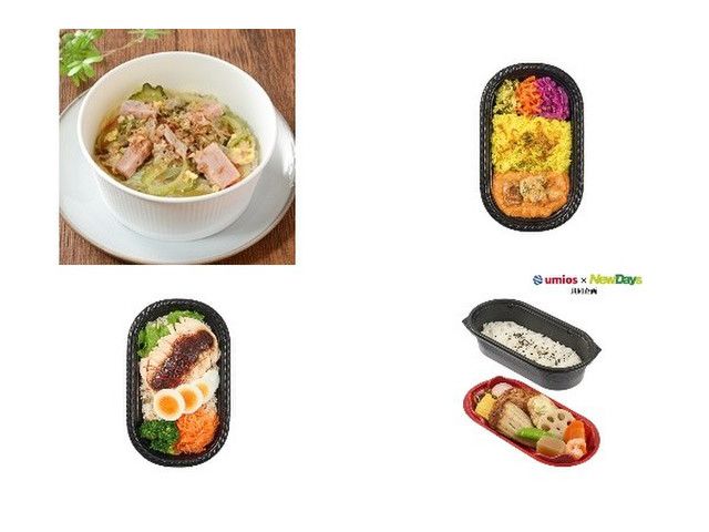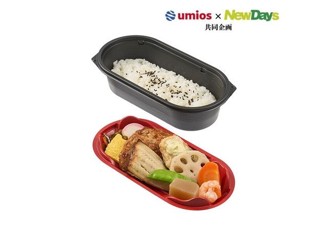 <umios×NewDays共同企画商品>焼いたホッケ、サバの竜田揚げにあじのほぐし身入りの魚ハンバーグを盛り付けた、様々なお魚が食べられる弁当です。 取り扱い店舗 首都圏及び静岡・長野・宮城・福島・山形・岩手
