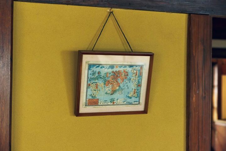 額装して壁掛けに。「古地図は時の羅針盤のような存在。眺めていると100年、200年前、街はどんな姿をしていたのか。人々の生活観や感性はどのようなものだったのか。とても興味深く思います。現代とは異なる、時間の感覚が感じられ、見入ってしまいます」