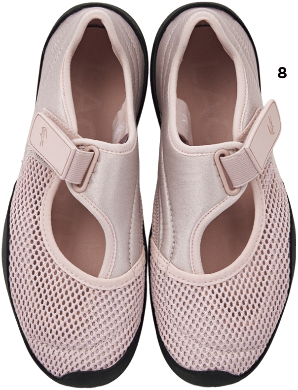 編集H(以下H) 私はまだ子どもが小さくてよく走り回るから、とにかく動きやすくて機能性のあるものが気になるかな。ラコステのメリージェーン風スニーカー⑧はスポーティなムードの中にも可愛さがあって、何より淡いピンクに心奪われました。あと、ノースフェイスのベスト⑨もツボ! いつものトップスに重ねるだけで今っぽい着こなしになるし、ポケットもたくさん付いてるから、公園とかアウトドアにめちゃくちゃ使えそう。