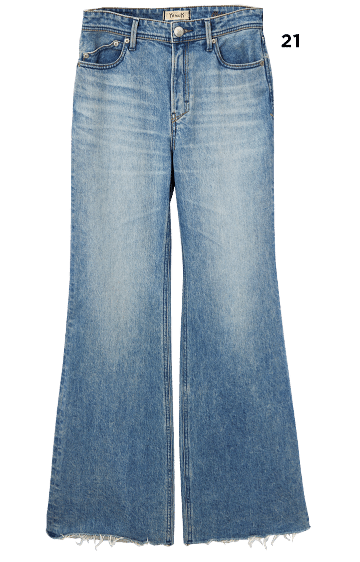 Y ていうか、すごく話がずっとガーリーな方向にいってるけど(笑)、ミューズといえばやっぱり欠かせないのはデニムじゃない? 私はデニムブランドをいくつか回って結構いろんなモデルを見たの。太めのシルエットはトレンド継続しつつ、感度の高い人は細身のものを手にしている印象。そんななか、私的にヒットしたのは、からだに付かず離れずの美脚見えするフレア。実際にどのブランドでもすごく売れてるんだって。色は断然ブルー。