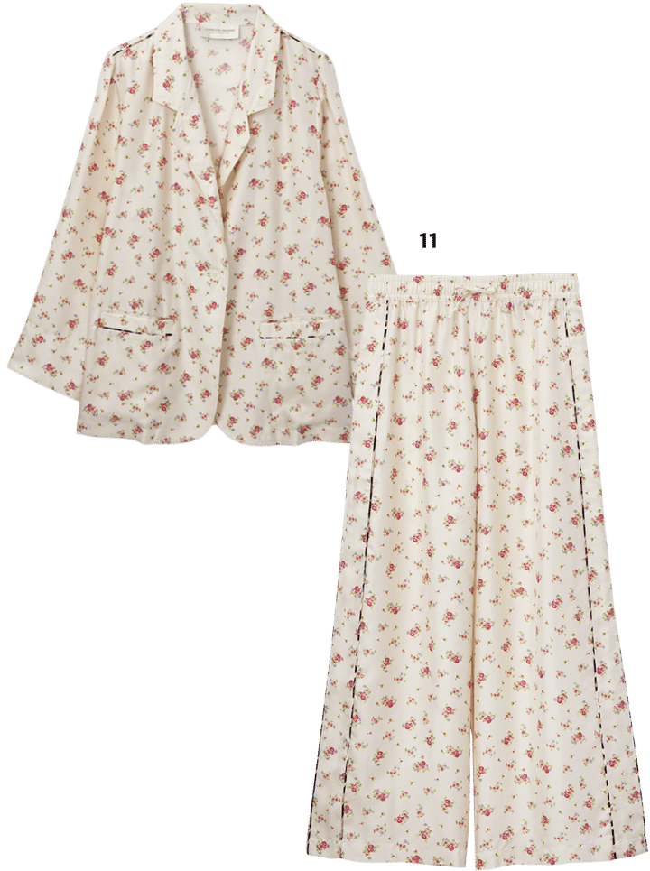 I なるほど。大きめの襟、勉強になります。私も甘いものが割と好きなので、フリルカラーやフラワーモチーフのトップスは気になっています。甘い分、シンプルなタイトスカートやカジュアルなパンツで甘さのバランスは加減しつつ。あと、可愛かったのが、サロン アダム エ ロペで見かけたフラワープリントのセットアップ。ロマンティックな柄に反して、パイピングがレオパード柄になっていたり、上質なシルク製だったりと、そのギャップに思わずテンション上がってしまいました!