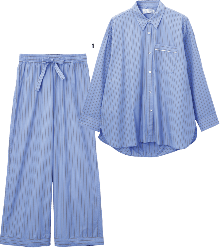 編集I(以下I)カラフルなアイテムも多かったですが、柄ものも結構目につきましたよね。ストライプ柄のパジャマみたいなセットアップ①とか。