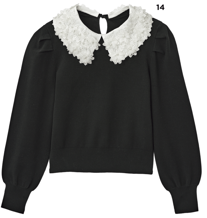 H スタイリストの金子綾さんがよく言ってるんですけど、大人は顔まわりを華やかにしたほうがいいって。だからこういう大きな襟とかフリルって、旬でもあるけど、理にかなってるのかなと。