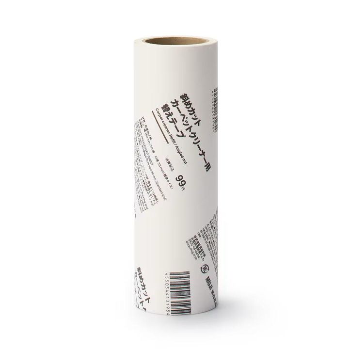 お掃除グッズとしてストックしておきたい、カーペットクリーナー用の替えテープ。シートの形状に斜めカットを採用しているので、剥がしやすく失敗いらずです。