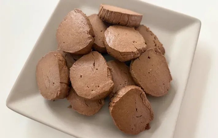 一般的なクッキー作りには欠かせない卵や砂糖を使っていないにもかかわらず、見た目はよく見るチョコクッキーとなんら変わりません。