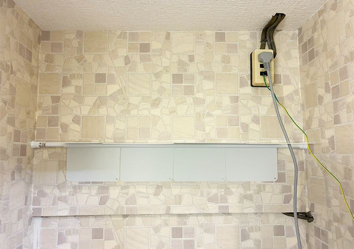 まずは、デッドスペースを見つけ、つっぱり棒を壁に密着させるようにして、きつめに設置してください。