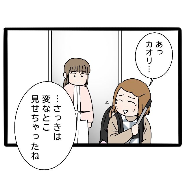 声をかけると、先輩は「あっカオリ・・。さっきは変なとこ見せちゃったね」と笑顔で言いました。明るく装ってはいますが、無理をしているのは明らかでした。