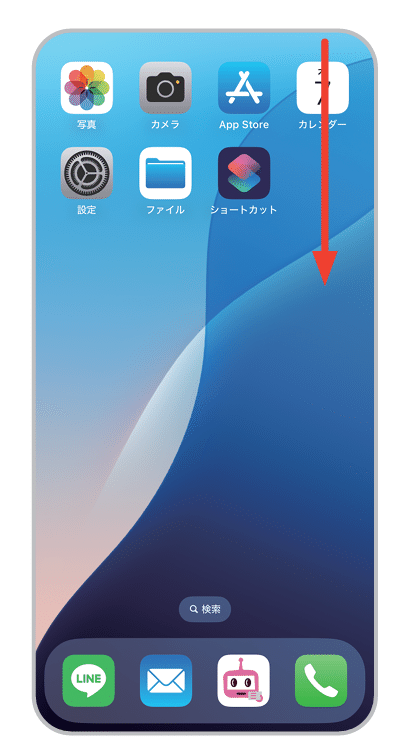 ホーム画面の右上から下へスワイプ。