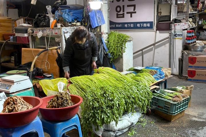 以前、こちらの連載で、市場内にあるスターバックスをご紹介したことがある京東市場。ソウルでもっとも大きな市場として知られ、ありとあらゆるものが揃います。特にこの時期は、セリやナズナ、ヨモギ、タラの芽などポムナムル(春のナムル)が旬。スーパーにも並びますが、やはり市場のほうが断然安いので私も喜んで買って帰りました。