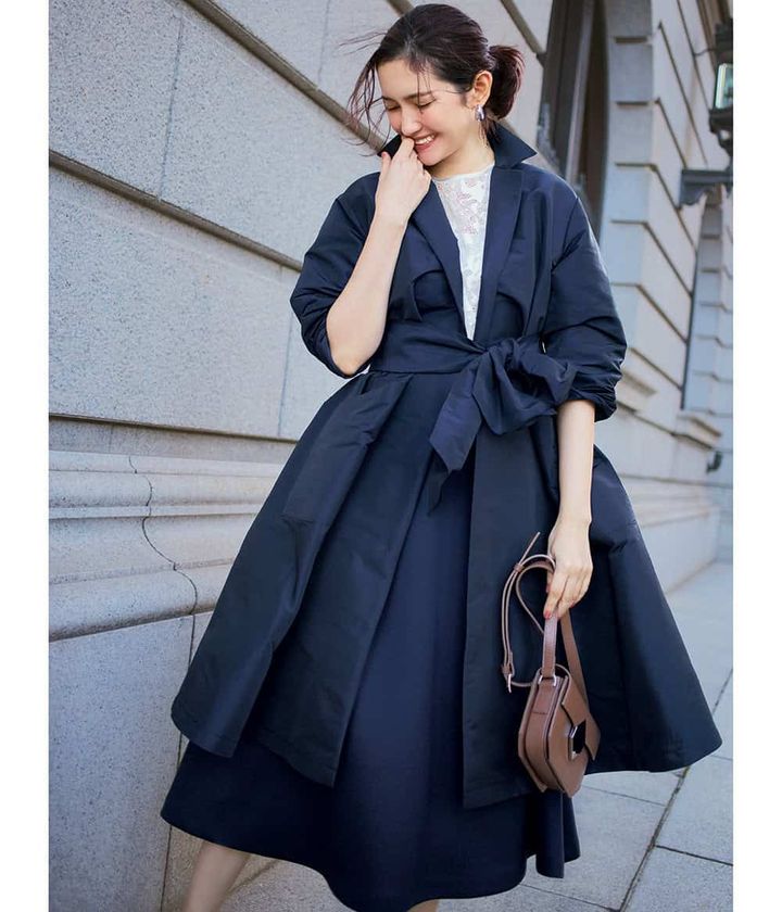 オールネイビーを更新するチラリと効かせたレースの品格。今季も引き続きトレンドのレースは、甘さを抑えた存在感のある大振りモチーフが大人には最適。通勤コーデには華やかさと好印象が、自然に宿る白一択。