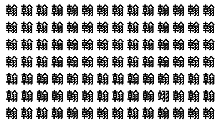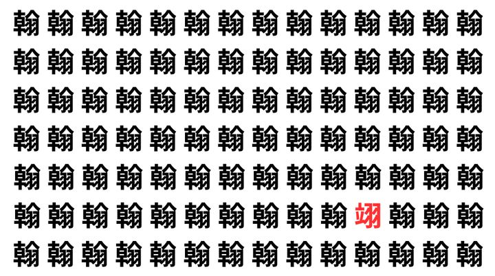 たくさんの「翰」の中に、よく似た別の漢字が1文字だけ隠れています。