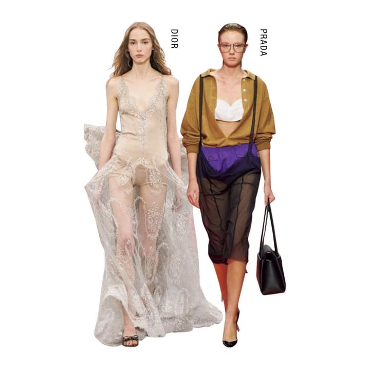 シアー素材が、ここ数シーズン続けてトレンド入り。透けることを活かしてヘルシーな肌見せにトライするもよし、洒落感のあるレイヤードスタイルに仕上げるもよし。目新しくはないけれど、今っぽいバランスで肌を出すにあたり必要不可欠な存在!
