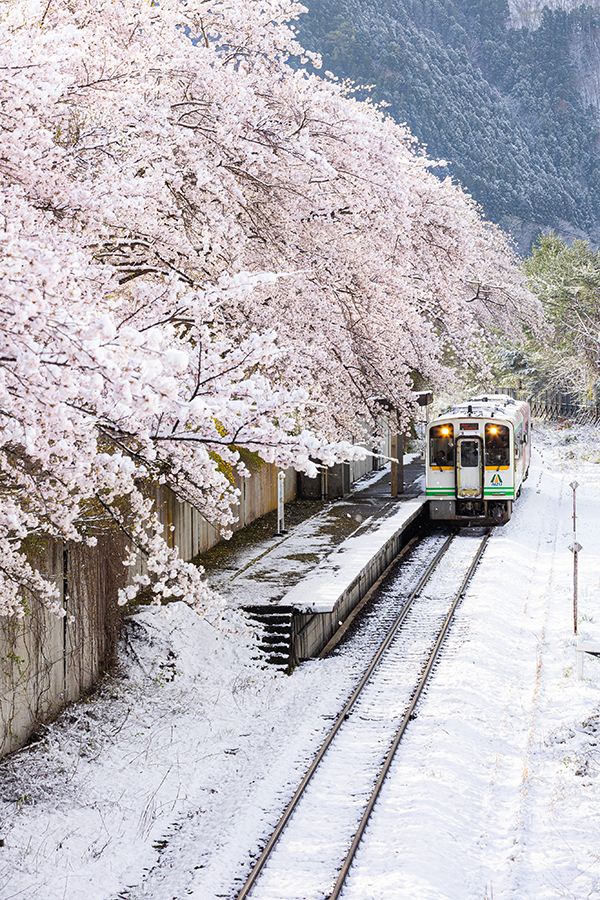 春の桜に季節外れの雪が降り積もる、『桜隠し』と呼ばれる現象をとらえた、なんとも幻想的な作品です。