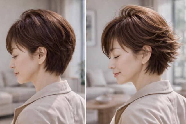 ▲重さが残るショートと、軽さのあるショート。長さは同じでも、質感の違いで印象はここまで変わります