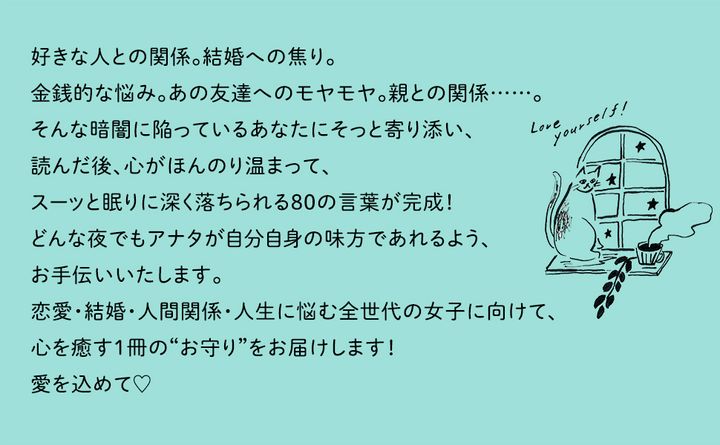 孤独で苦しくて眠れない夜のざわざわした女心を、メリ先生の「恋愛処方箋」で癒やします!