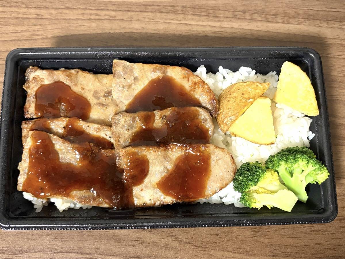 今回、購入した「新・ビーフカットステーキ重」は、柔らかいステーキ肉がメインの贅沢な一品です。