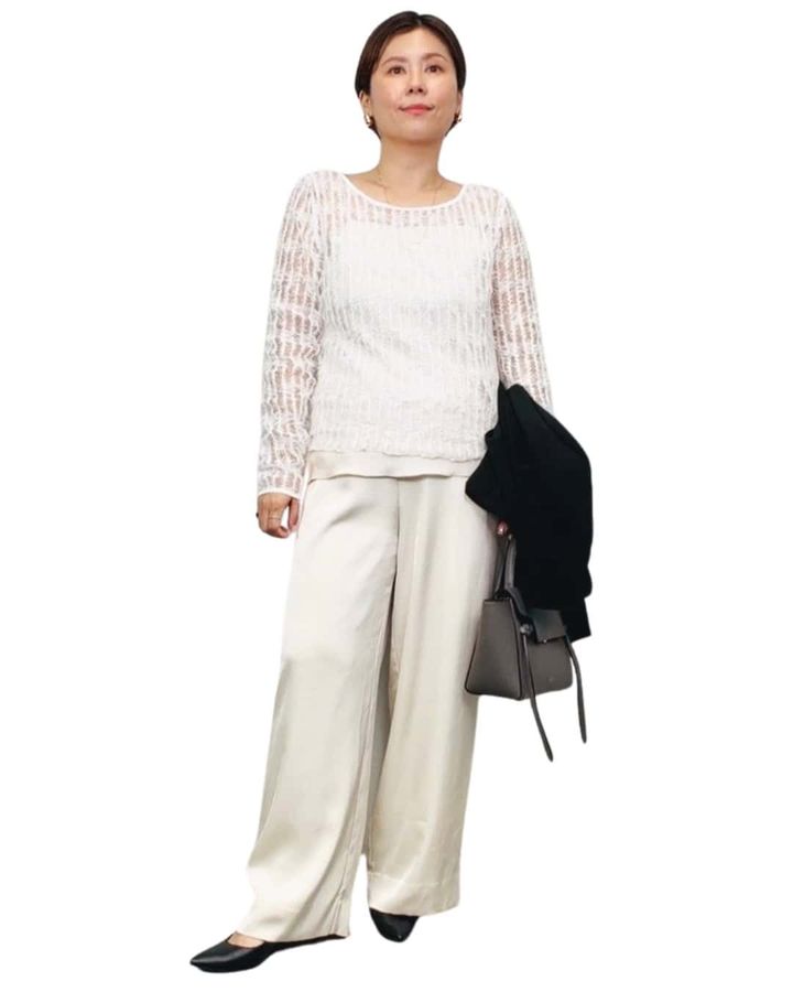 「シアー素材がカジュアルすぎず、ママコーデにちょうどいい。ラフになりすぎないキレイめカジュアルの救世主。」谷 美紗子さん(168m/骨格:ウェーブ)