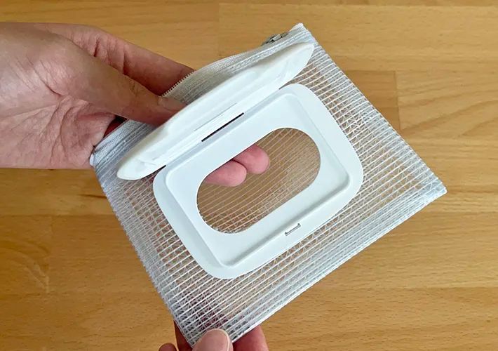 ティッシュの後ろ側に、コンパクトな1枚タイプのウエットシートを入れておくのもよさそうです。
