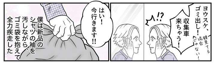 現実は甘くない。オムツを替えようとしても走って逃げるソウタ。その横でレイカが「パパ、スカートどこ?」と騒いでいる。こぼれた牛乳を雑巾で拭き、ゴミを抱えて全力疾走……。オシャレなシャツの裾を汚しながら、僕は朝から奮闘する。