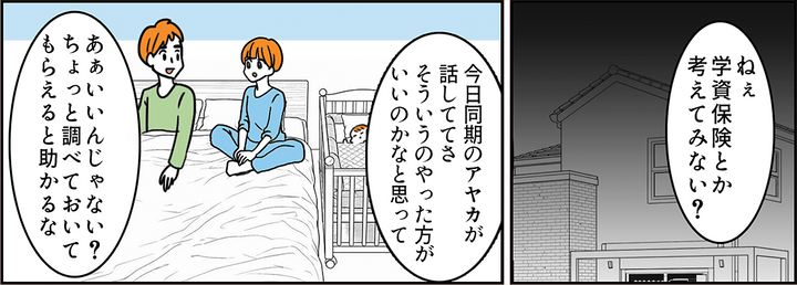 娘が生後3ヶ月になってやっと人と会う余裕が出てきました。すると同期のアヤカから「うちは学資保険に入ったよ」という話が……。試しに教育費にいくらかかるか調べてみると、学費だけでもかなりの金額になると知ったのです。今の世帯年収で大丈夫なのか、私は急に不安に襲われてしまいました。