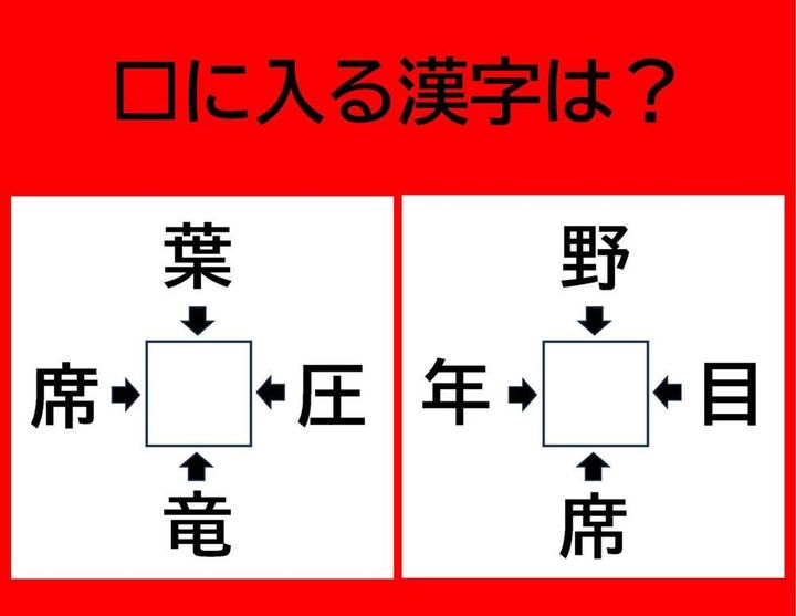 2. 【漢字パズル】席□、葉□、圧□、竜□ □に入る漢字は何…?