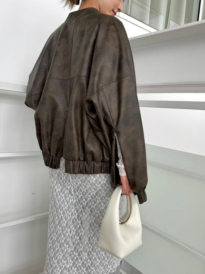 ハードなブルゾンはレースやスエットで柔らかさをプラス